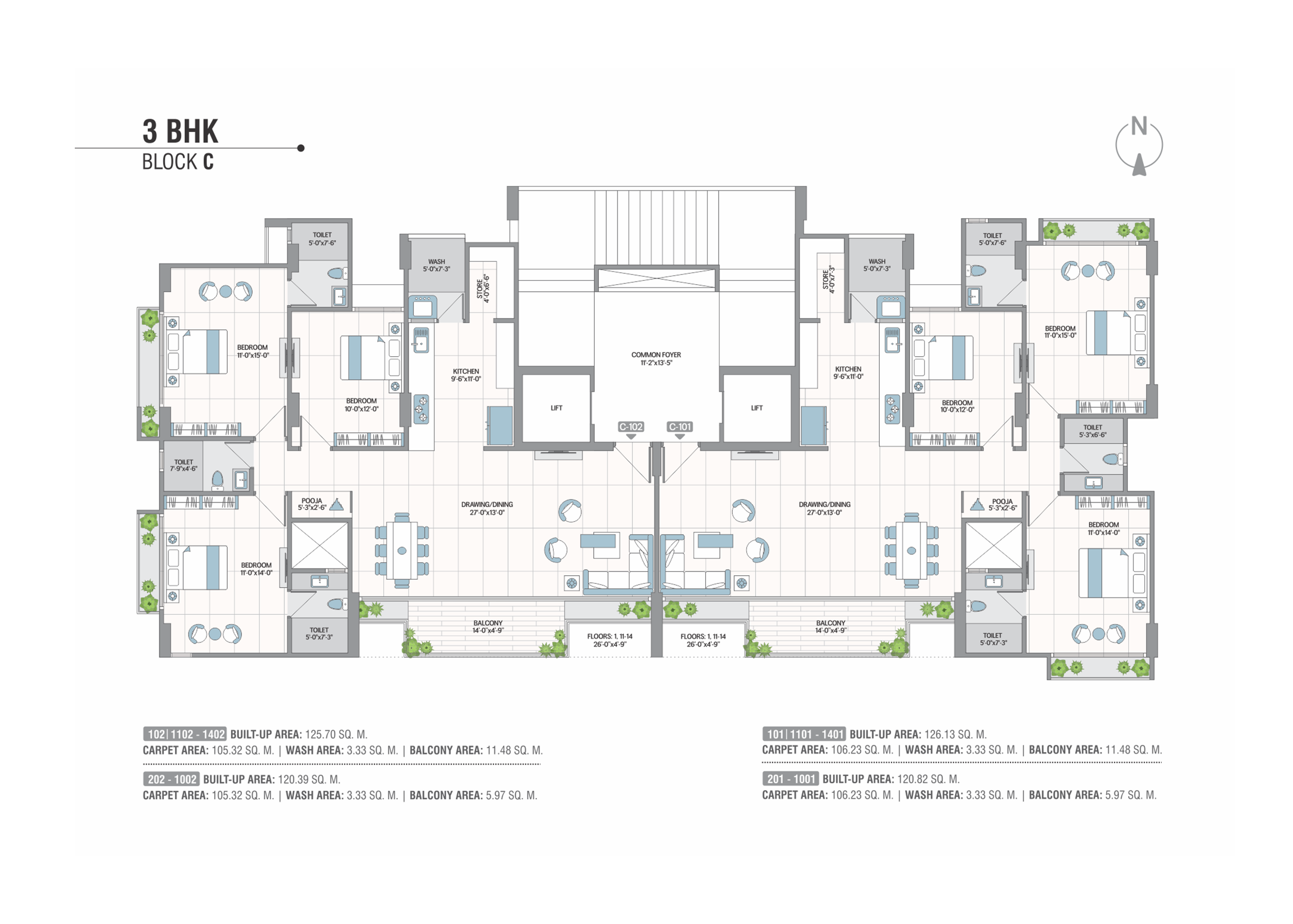 AC points. Provision for broadband, telecom & television.